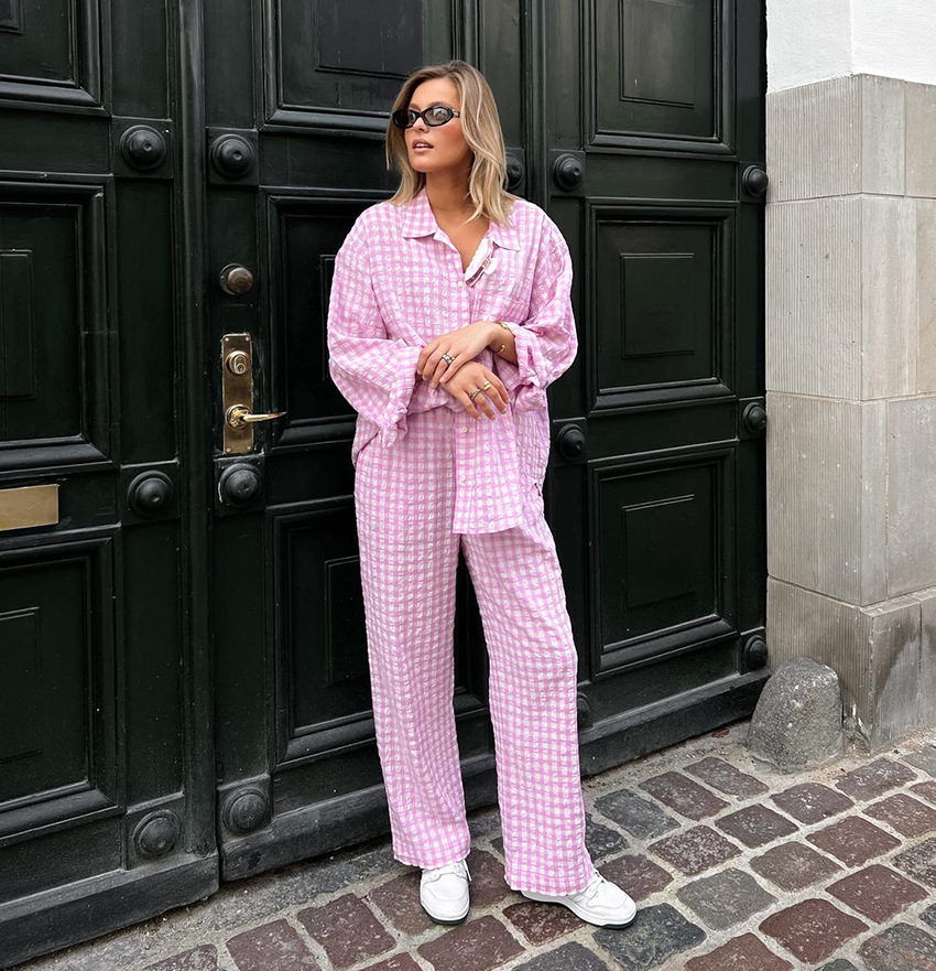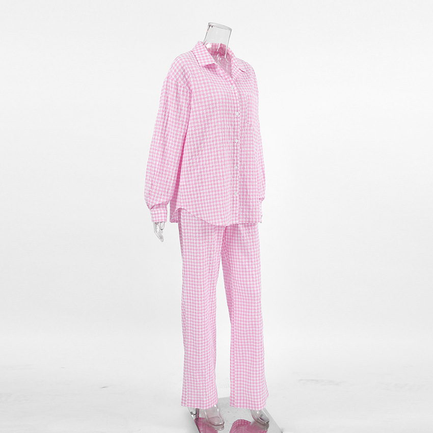 Autumn And Winter New Style Pink Plaid Loose Leisure Suit