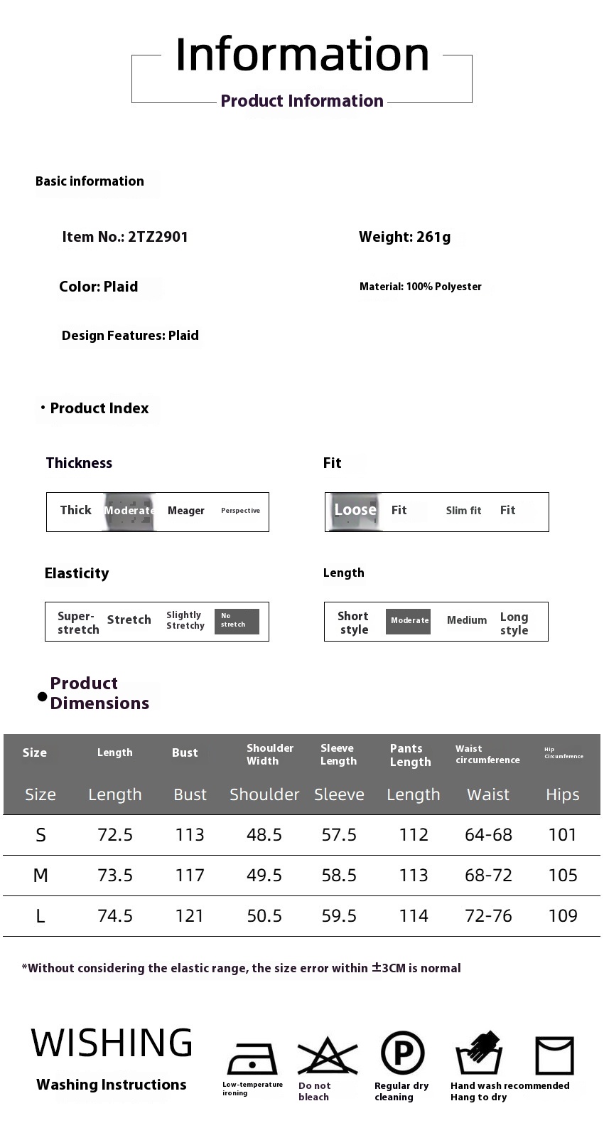 Color: plaid, new products in stock, ingredients: 100% polyester, weight: 261g