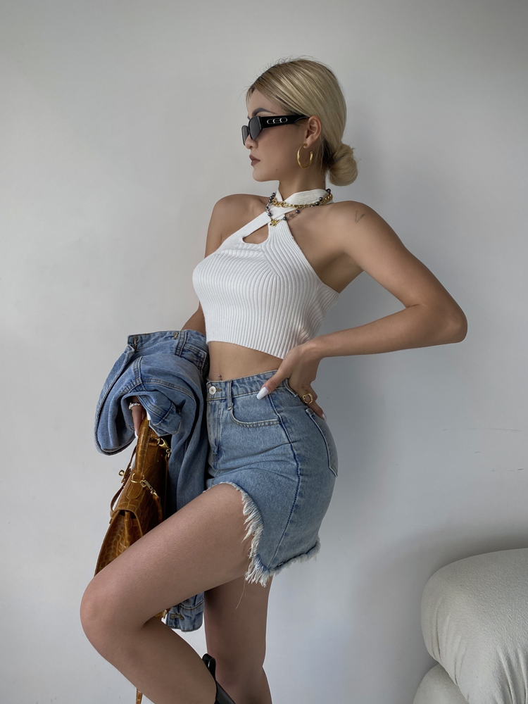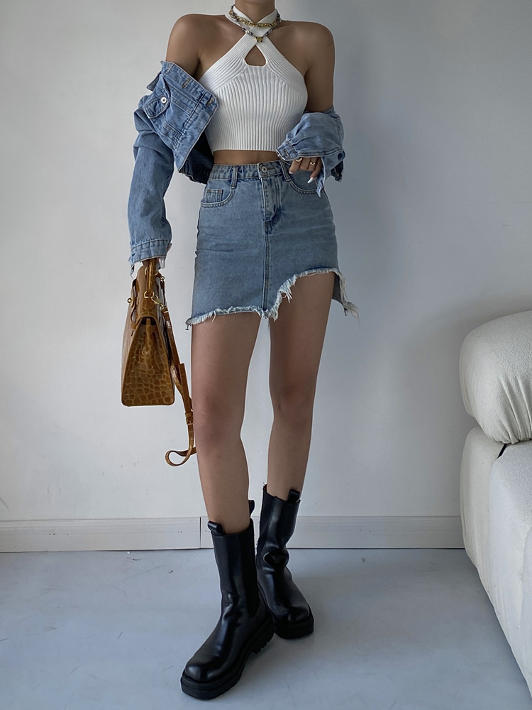 Women's Short Denim Jacket High Waist Slim Skirt Two Piece Suit